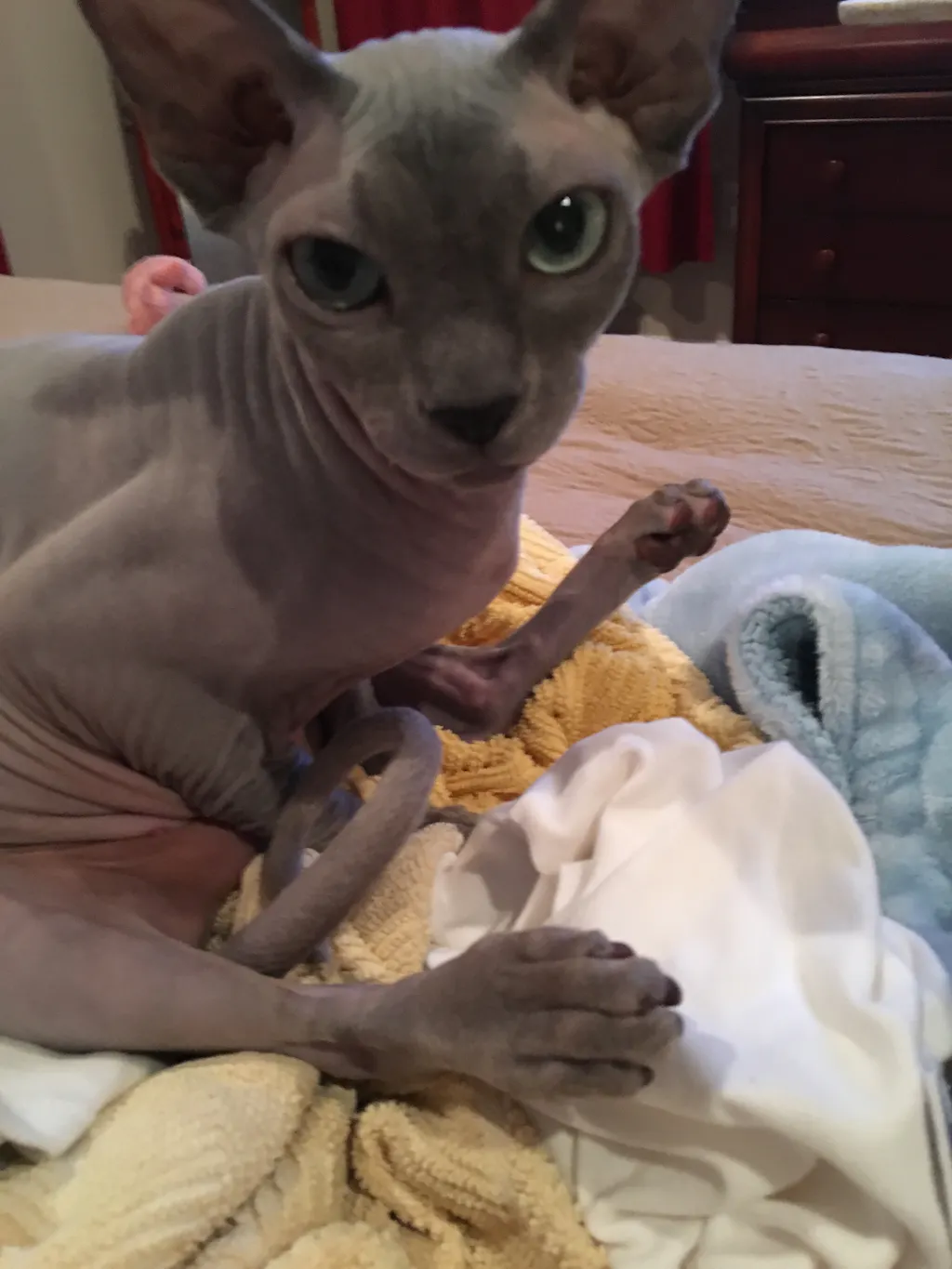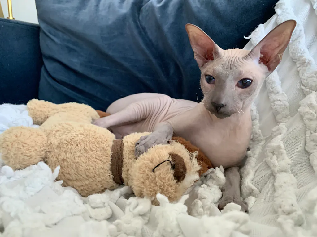 My wife and I have two Peterbald sphinx cats Benji & Petey! They are two years apart but share the same bloodline. Both of them were constantly sneezing + itching their eyes raw. Numerous trips to the vet, the same antibiotics every other week and no lasting results we contacted April. April was very educated on these breeds and was incredible with her knowledge of their health issues and needs. She immediately had us change their litter, we put them on her allergy relief remedy, numerous of the vitamins, changed their litter & switched to a raw diet and you can see the changes! Their energy has gone up and the sneezing has stopped. They both seem genuinely healthier in their skin and all around health. We are so happy to have found April and will be reaching out in the future with any further questions!