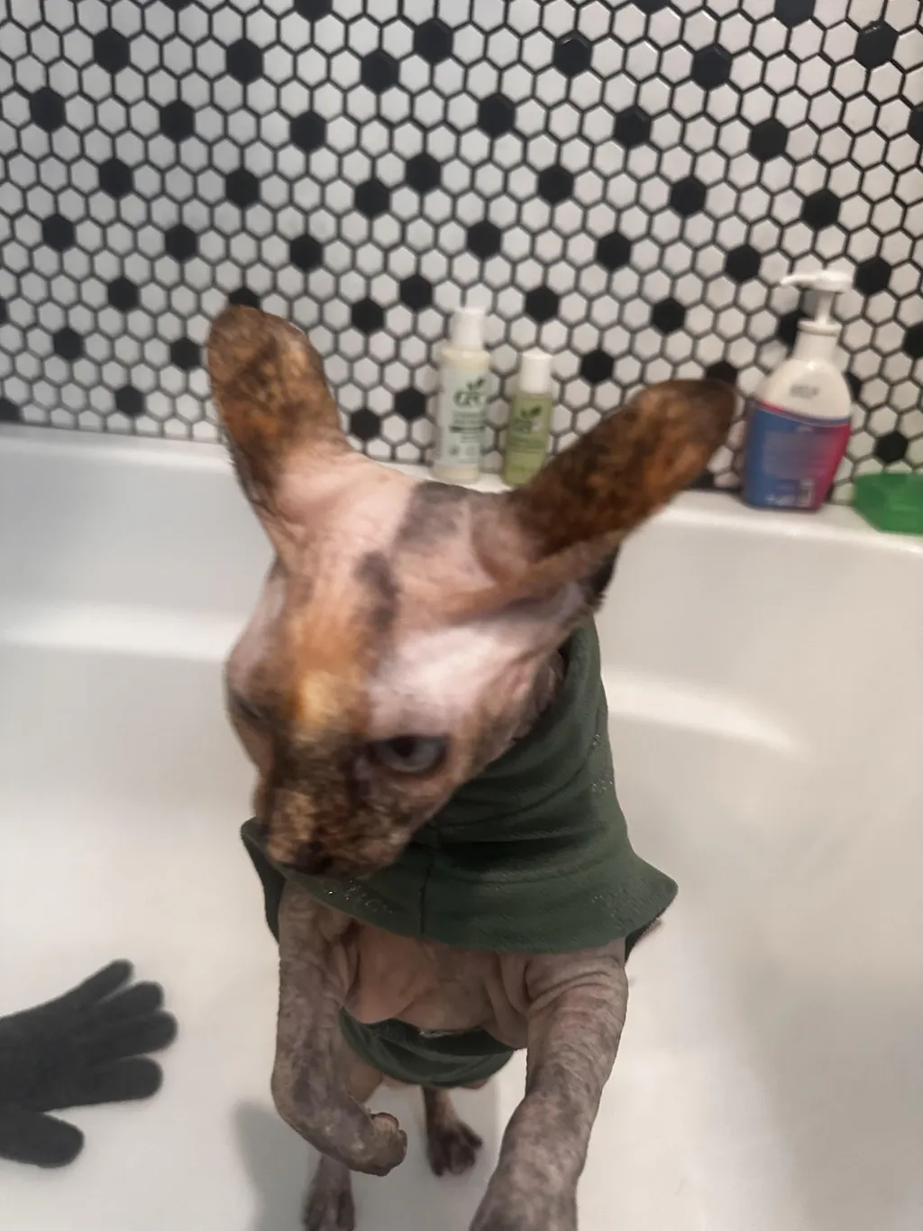 Put on exfoliating Gloves. Wet your pet. Place liberal amount of product into the palm of one wet gloved hand, then massage hands together quickly to produce lather. Rub onto pet starting with head, avoiding eyes and ears. Rinse thoroughly. Apply pet conditioner immediately following the rinse while pet is still wet.